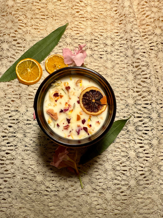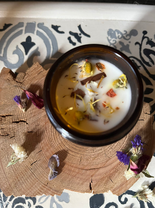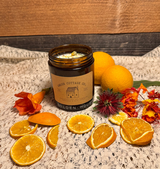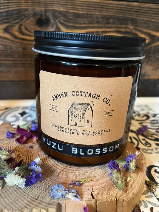 All of our candles at Amber Cottage Company are handcrafted with 100% organic, plant based soy bean wax sourced in America. Our plant-based fragrance blends are infused with safe, non-toxic and clean oils and finished with paper woven cotton wicks. We top off these one-of-a-kind candles with lovely foliage to create the coziest experience. We are proud to offer the safest and highest quality standards in candles within the industry.