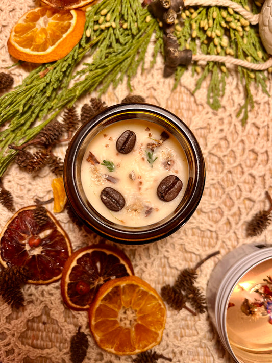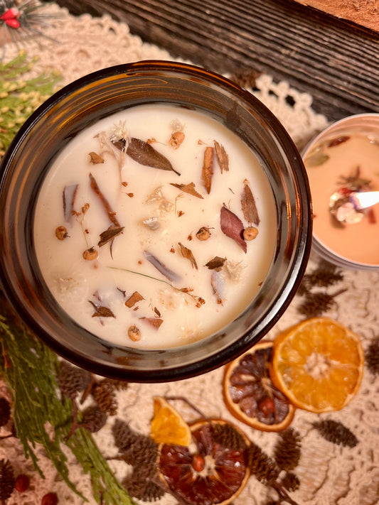 All of our candles at Amber Cottage Company are handcrafted with 100% organic, plant based soy bean wax sourced in America. Our plant-based fragrance blends are infused with safe, non-toxic and clean oils and finished with paper woven cotton wicks. We top off these one-of-a-kind candles with lovely foliage to create the coziest experience. We are proud to offer the safest and highest quality standards in candles within the industry.